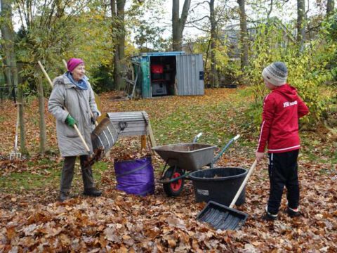 Für alle anderen Aktionen gibt es vier Gartensamstage im Jahr, zwei im Frühling, zwei im Herbst. Dann sind auch die nicht so leidenschaftlichen Hobbygärtner dabei. Erwachsene und Kinder bevölkern das Grundstück. Ein einziges großes Gewusel. Der vorher angelegte Plan, der auch Reinigungs- und Erhaltungsarbeiten am Gebäude enthält, wird abgearbeitet.