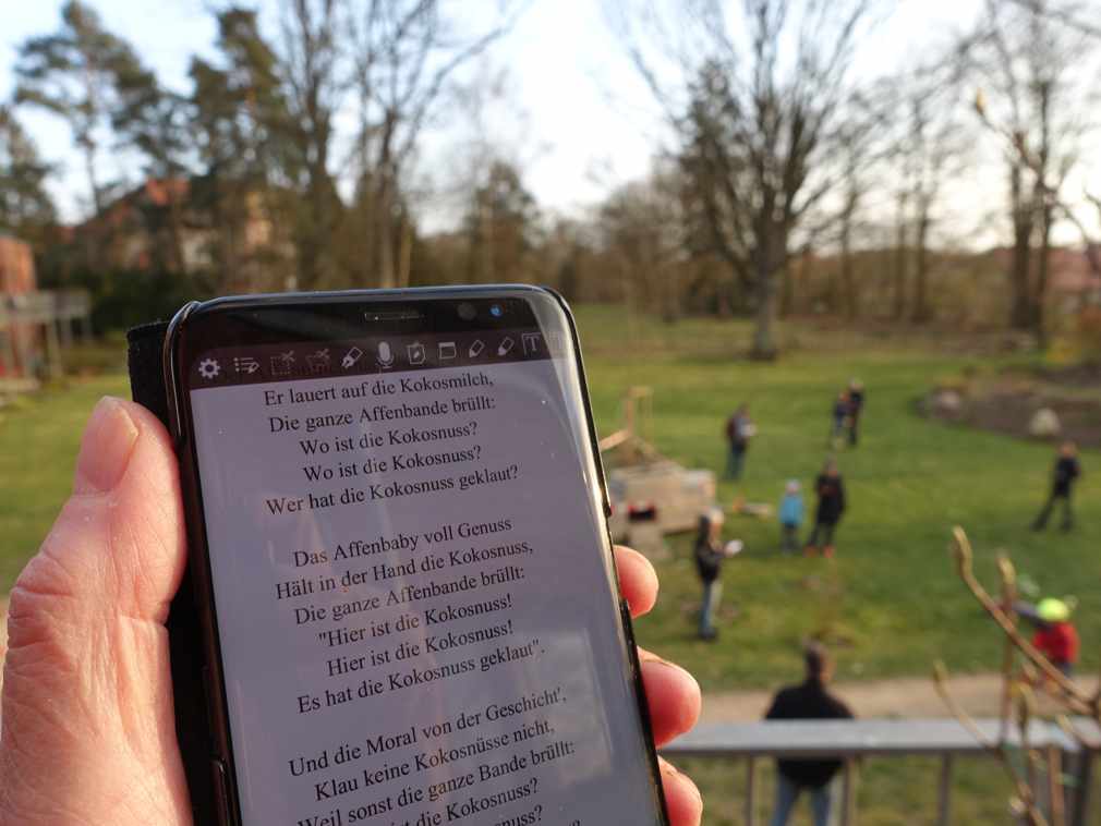 Um nicht ein halbes Jahr auf die nächste Gelegenheit zum Singen warten zu müssen, entstand 2016 ein offenes Chorsingen ca. einmal im Monat mit den bereits bekannten Stücken. Das haben wir, unter wechselnder Anleitung, bis heute beibehalten, in warmen Monaten im Garten.