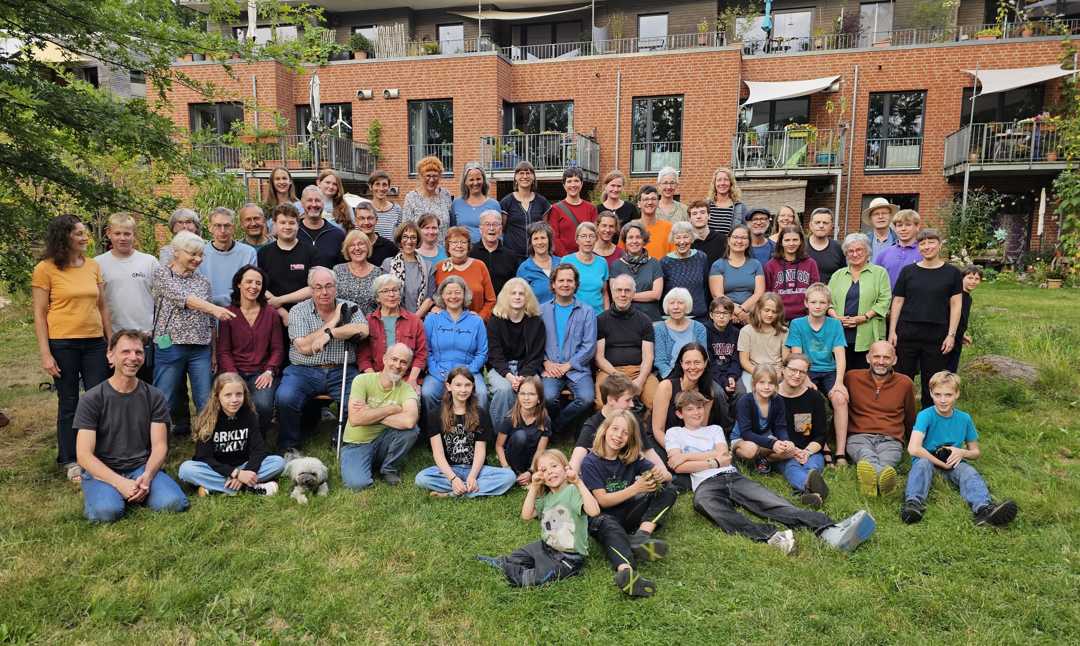 Gruppenfoto LeNa im August 2025 zum 10jährigen Jubilaeum draussen im Park
